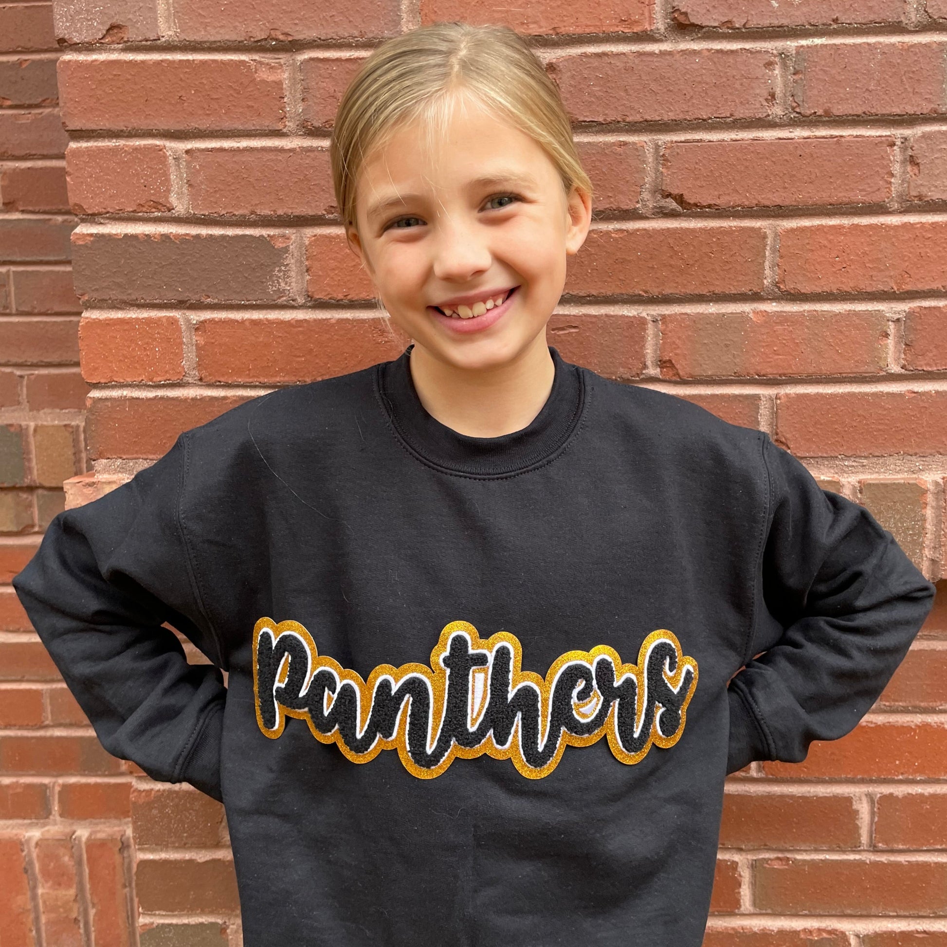 Panthers Black Chenille Patch in YOUTH Crewneck