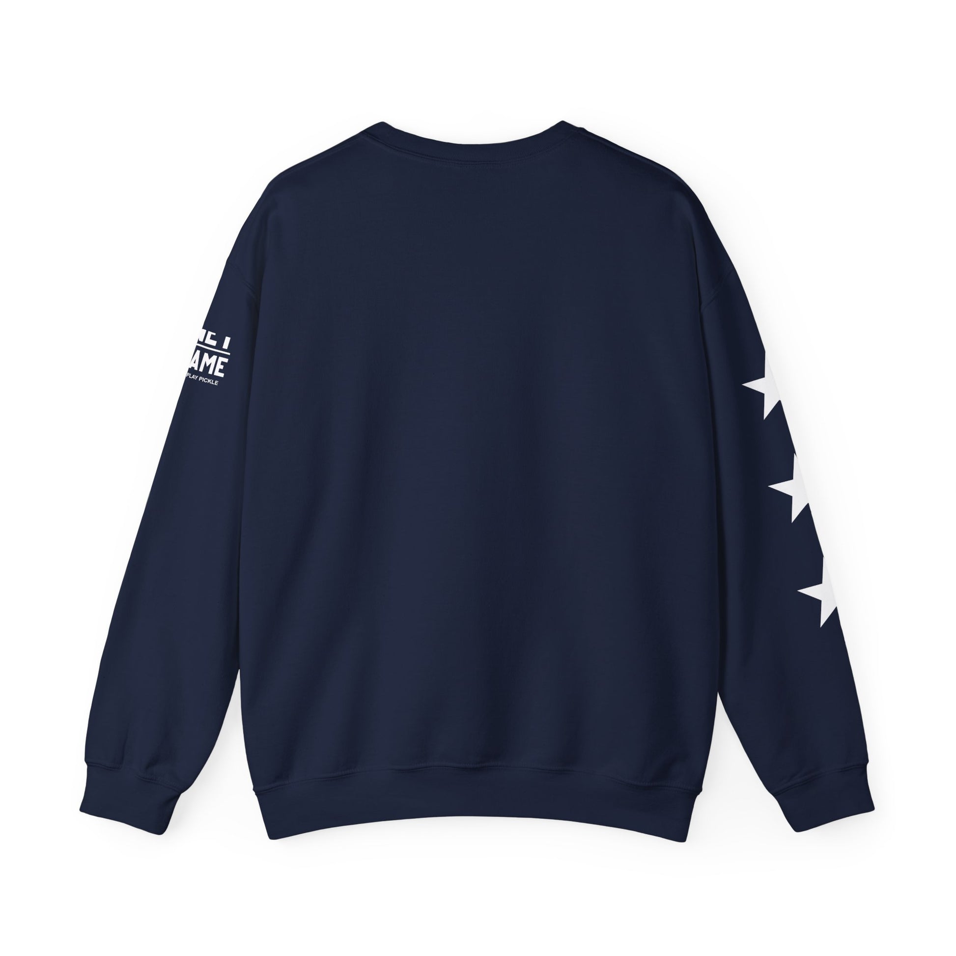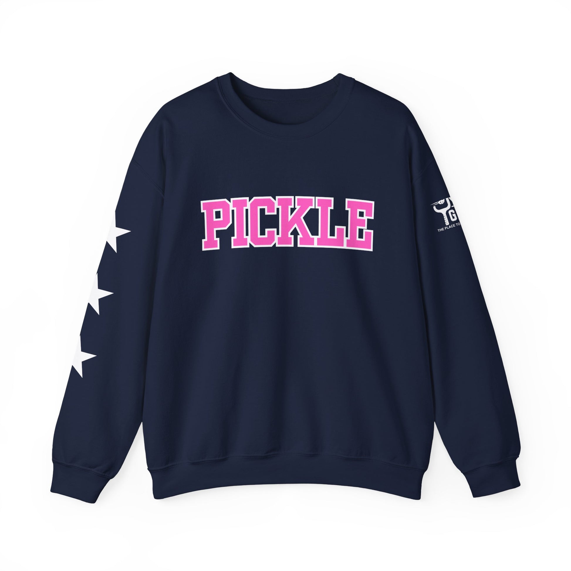 Enjoy playing or watching the game of Pickleball in this cute crewneck sporting "PICKLE" on the front, embellished with stars on the sleeve.