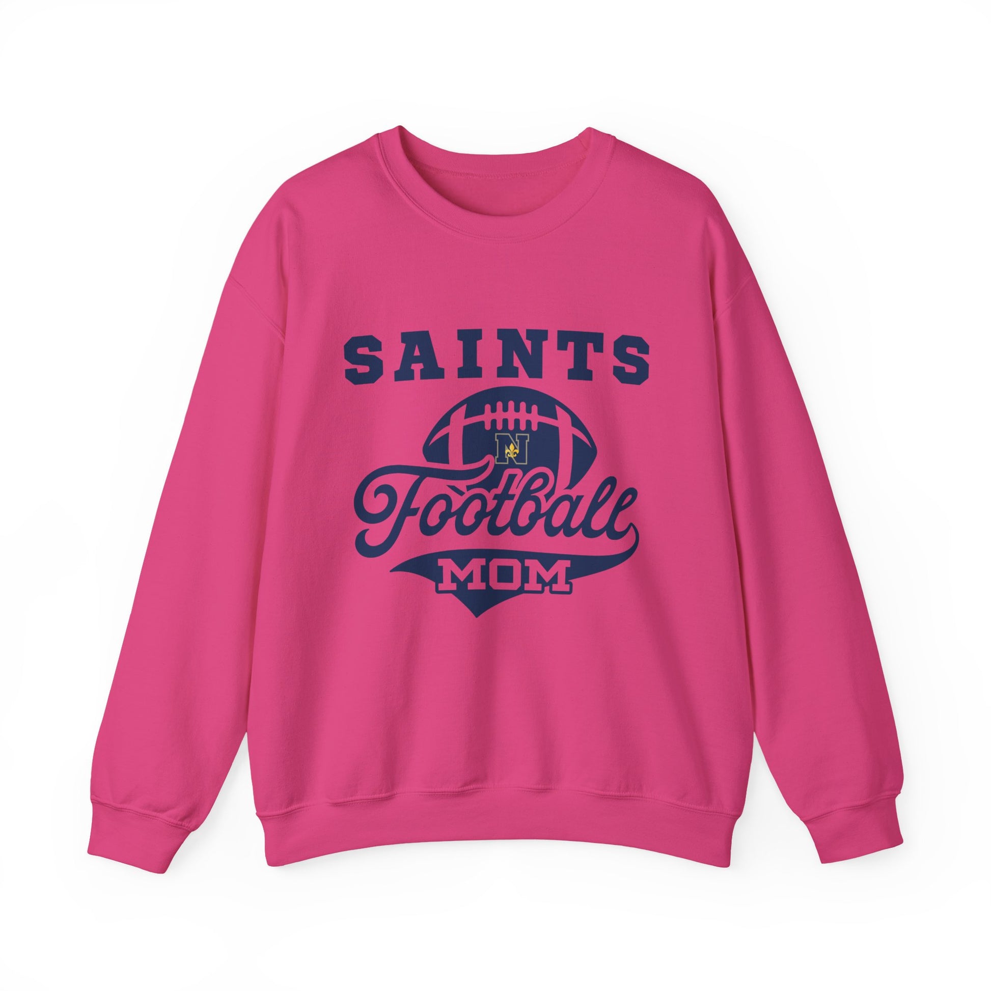 Saints Personalized Pink Football Mom Crewneck Sweatshirt