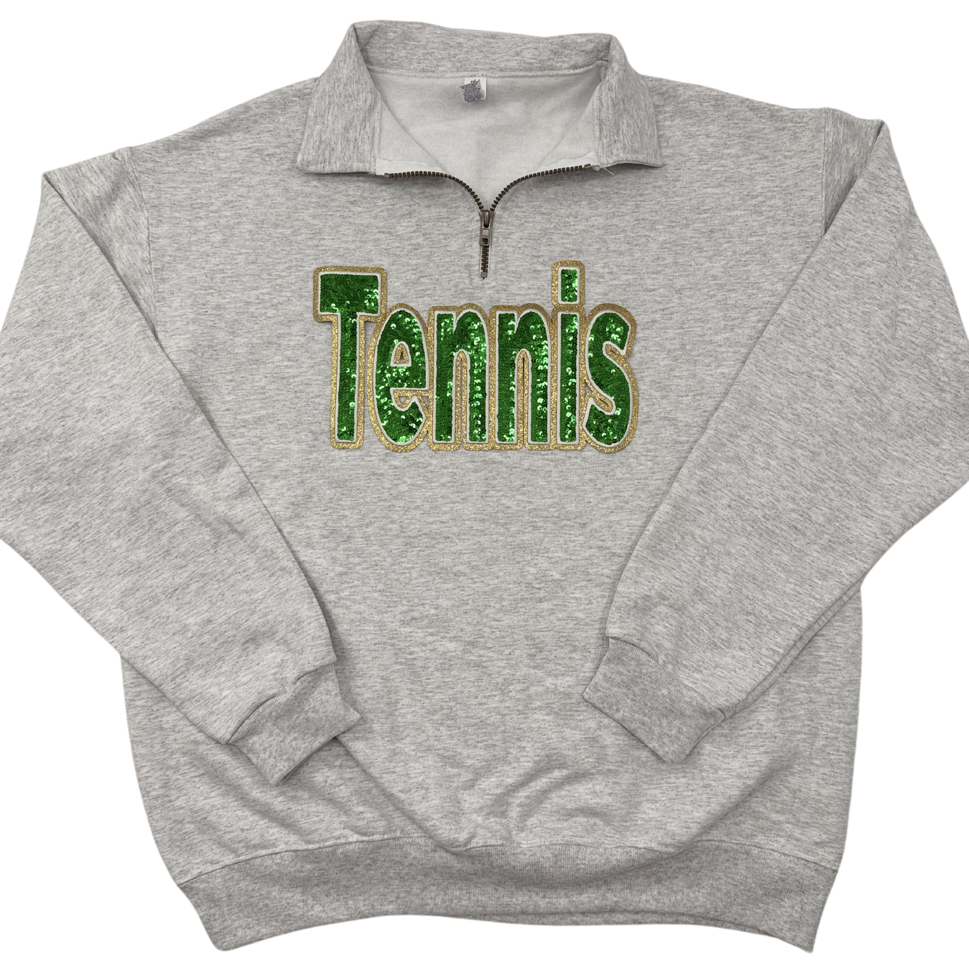 Dazzle the court in this trendy and chic tennis quarter zip with a sequin tennis patch.