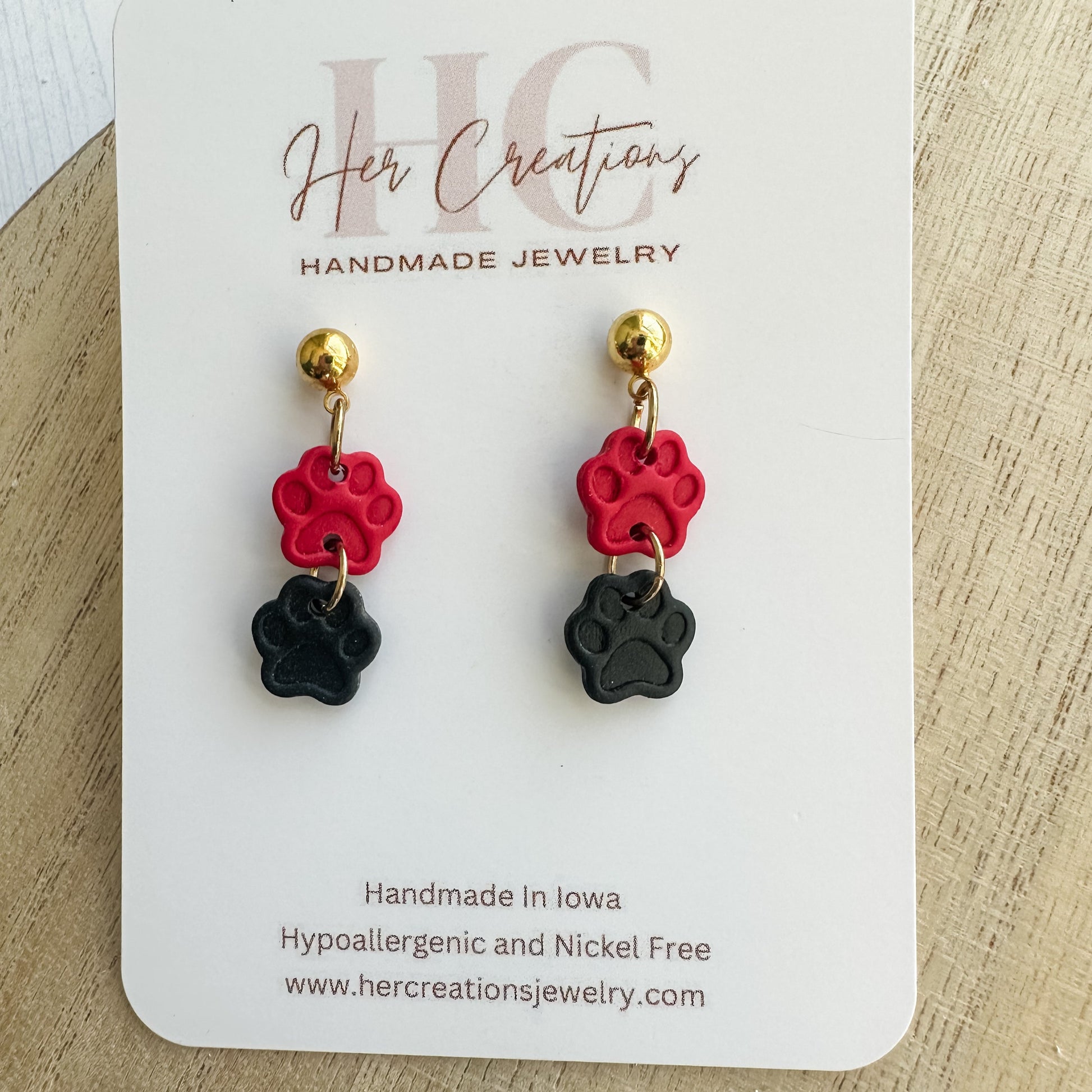 Show your Panthers spirit with this custom, hand-made panther paw dangle earrings! Available with silver or gold hardware.